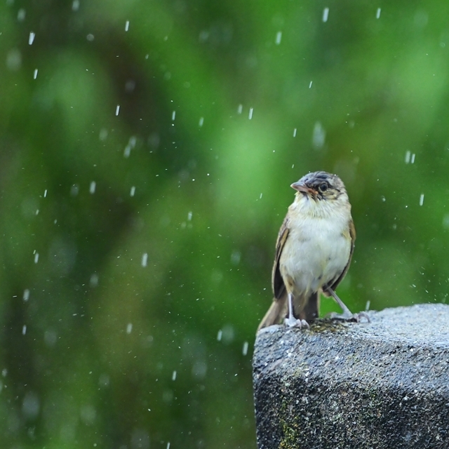 温帯低気圧が日本海に進み、南からは熱帯低気圧が運んできた 湿った空気の水蒸気が供給されて、まとまった雨が降りました。 15時〜16時の雨量(桑名)は12.5mm。上のオオヨシキリの写真を 撮影したころです。 |