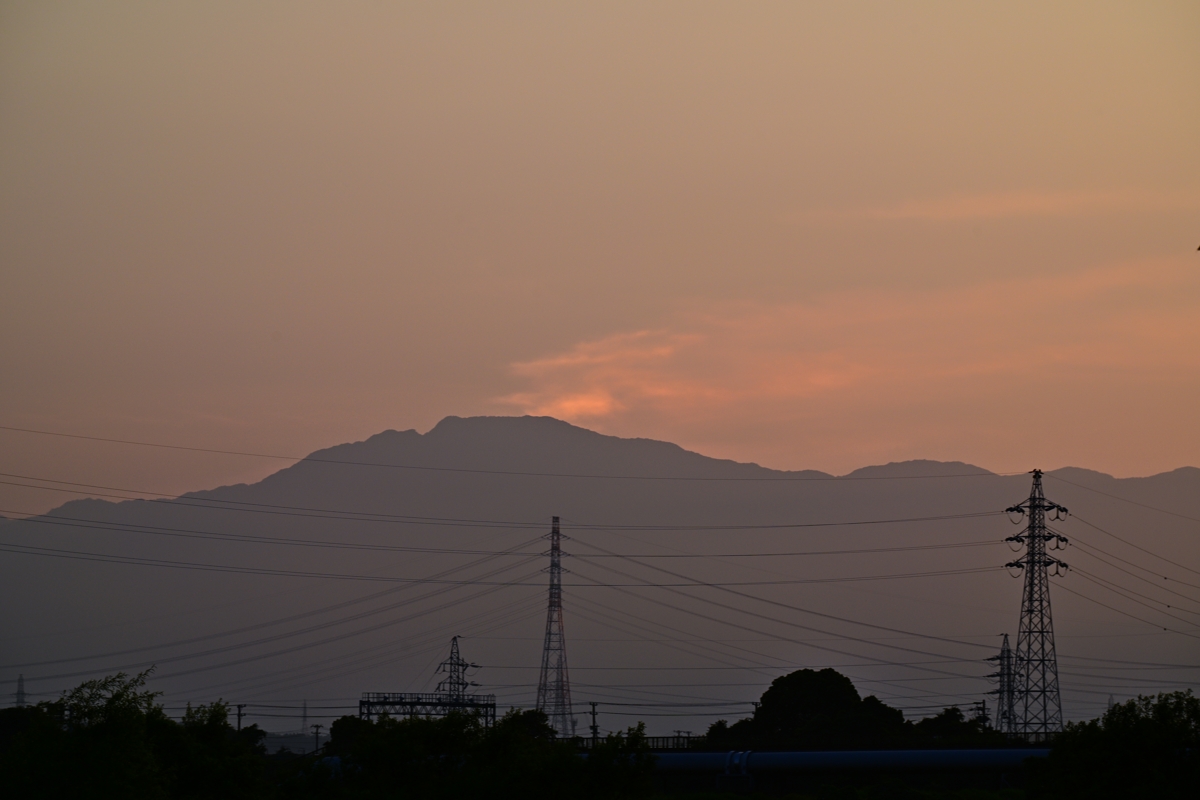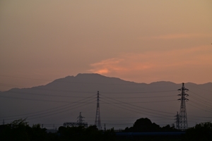 夕陽の幻日 18:49 西 200mm 太陽も真っ赤になったころ。 |