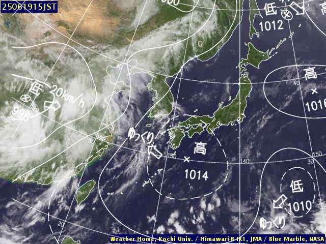 | 地上(高知大学気象情報頁赤外画像と気象庁速報天気図を合成) | |||
