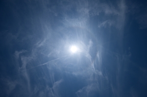 | 「3日連続猛暑日、巻雲乱舞の空に22°ハロ」(桑名市) | |||
