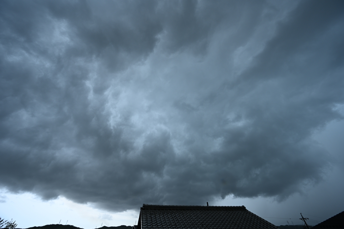 | 積乱雲のアーチ雲 11:38 南南東 14mm このとき驟雨が始まるところ。 |