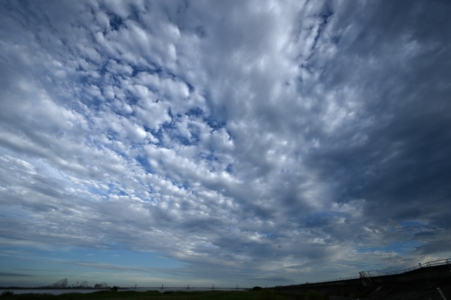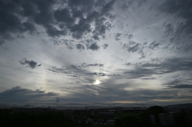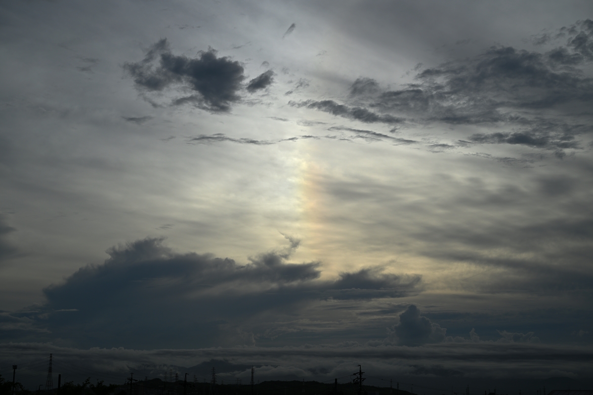 | 前線と熱帯低気圧の運ぶ暖湿気流によって、朝、三重県 北部の山麓に大雨。いなべ市や菰野町に土砂災害警戒情報。 24時間雨量では、いなべ市北勢で56.0mm、県境に近い 岐阜県上石津では294.5mmでした。おそらく三重県の いなべ市藤原町付近もかなりの大雨だったようで、 桑名市に流れ下る員弁川は怖いくらいの濁流になりました。 昼前には青空も広がってきましたが、むくむくと湧きたつ ような積雲群が並び立ち、遠方には積乱雲や雄大雲。 そしてそれらを起源としているであろう巻層雲や層積雲 などが広がり、幻日も見られました。 夜も層積雲が広がり、顕著な消滅飛行機雲が生じました。 |