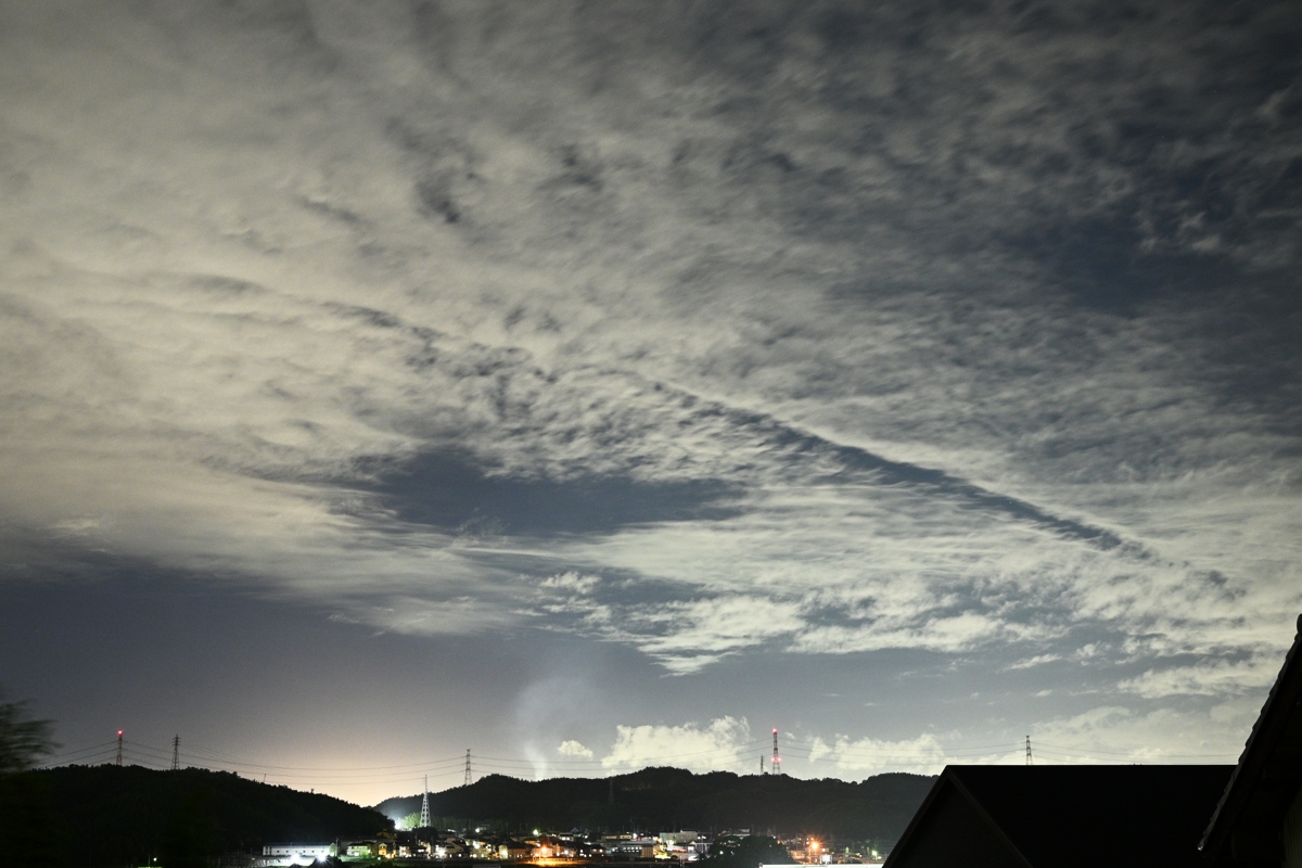 | 夜の層積雲に消滅飛行機雲 21:46 南 46mm |
