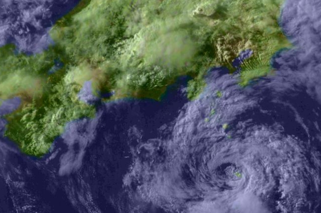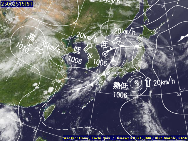 | 地上(高知大学気象情報頁赤外画像と気象庁速報天気図を合成) | |||