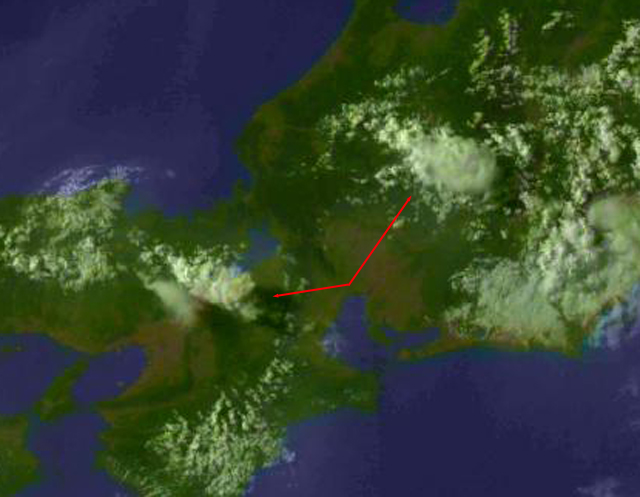 | 地上(高知大学気象情報頁赤外画像と気象庁速報天気図を合成) | |||