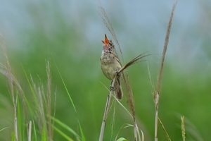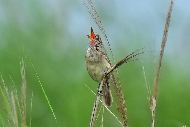 高い場所に出てきてゆっくり囀るオオヨシキリの個体は