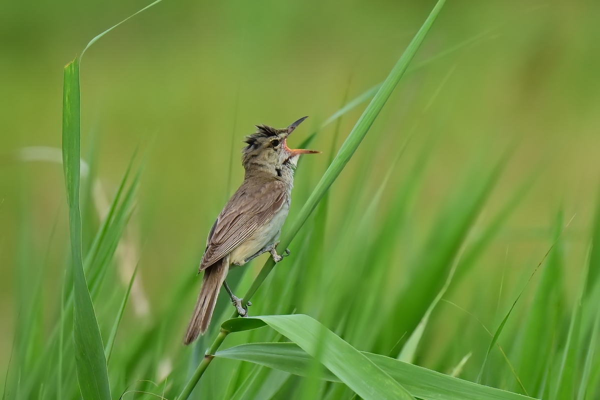 日没前に散歩しながら見つけた囀る個体を撮影。