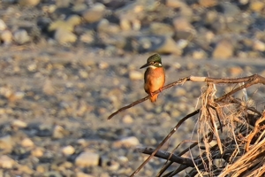 | 涼しい風の吹く、夕方の員弁川。 ミサゴが旋回しながら下流側から近づいてきて、また戻って いきました。昨日、揖斐川で久しぶりにミサゴを見ていたの で、もしかしたら同じ個体なのかもしれないと感じました。 対岸にはこれもまた久しぶりのカワセミ。 体のあちこちが黒っぽく、今年生まれた個体のように思います。 カワセミは例年この時期、対岸を中心に活動し、秋ころから 手前岸(北岸)のほうに活動場所を移してゆく傾向があります。 |