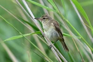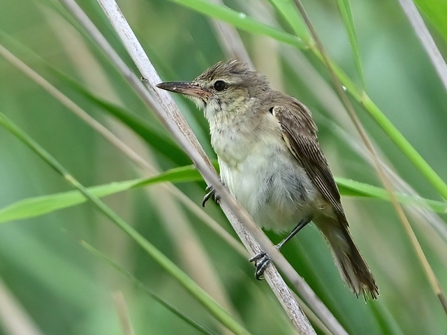 雨の止んだ夕方の揖斐川アシ原でのオオヨシキリ。