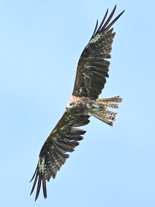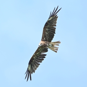 晴天の員弁川で旋回しながら移動するトビ。