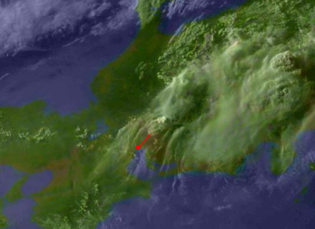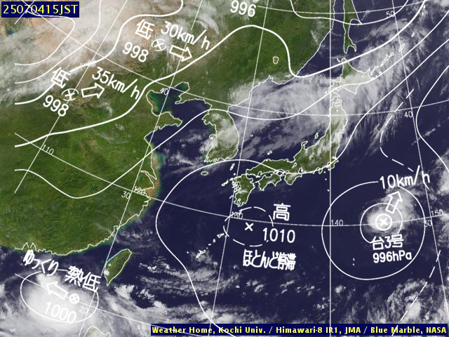 | 地上(高知大学気象情報頁赤外画像と気象庁速報天気図を合成) | |||