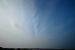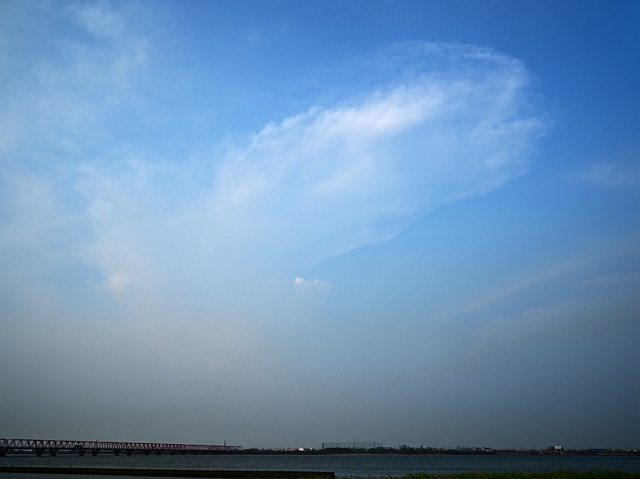 今日も中部地方から関東北部にかけて積乱雲が頻発し、 これを起源とする雲が南南西に流れて東海地方は 地上から上空までヘイズがかったような空。 このため、遠方の積乱雲がほとんど見えなかったが、 夕方、多治見方面に発達した近距離の積乱雲が かろうじて全貌を見せました。(コントラストは低い) |