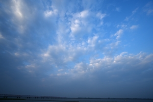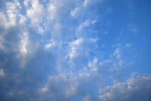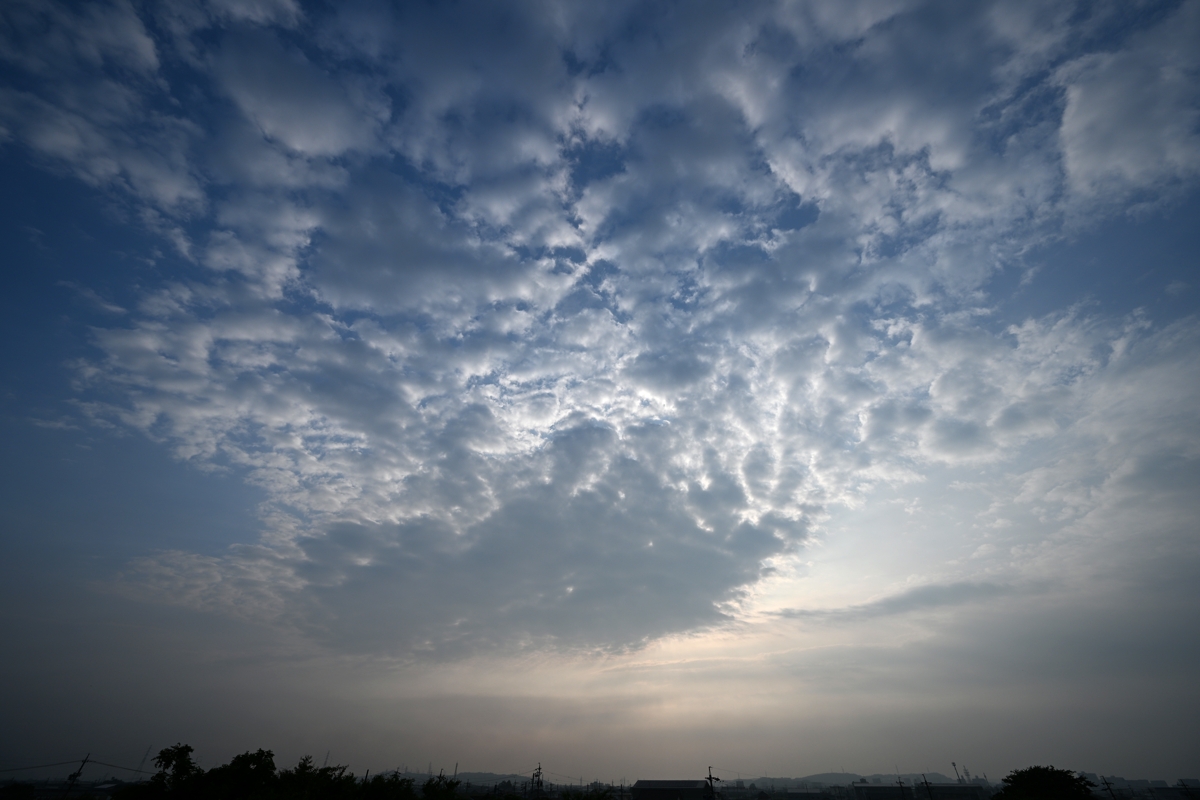 最高気温(桑名)は34.8℃。4日連続の猛暑日とはぎりぎり ならなかったのは、いくたびか空に広がった層積雲が 日射を遮ったためかもしれません。ときには高積雲と つながるような高めの高度にあらわれた層積雲は 夕方の水平に近い太陽光線によって立体感を見せ、 雲母のようにきらきらと輝いているかのようでした。 |