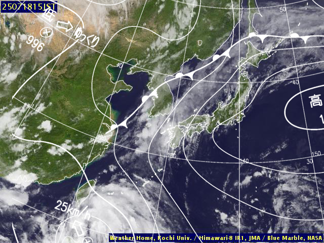 | 地上(高知大学気象情報頁赤外画像と気象庁速報天気図を合成) | |||