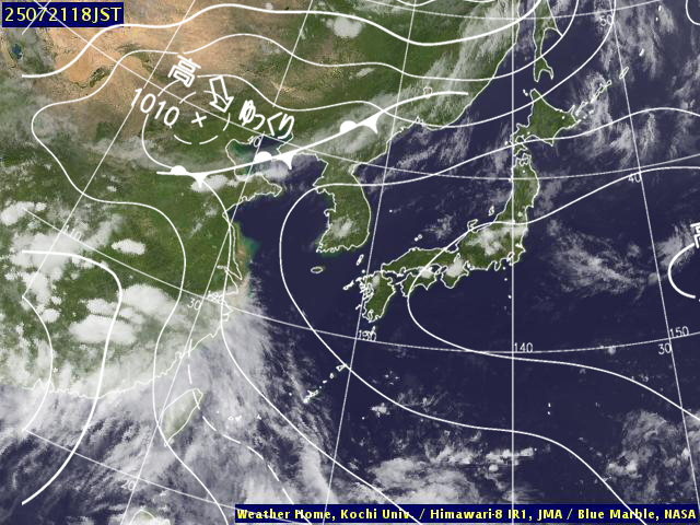 | 地上(高知大学気象情報頁赤外画像と気象庁速報天気図を合成) | |||