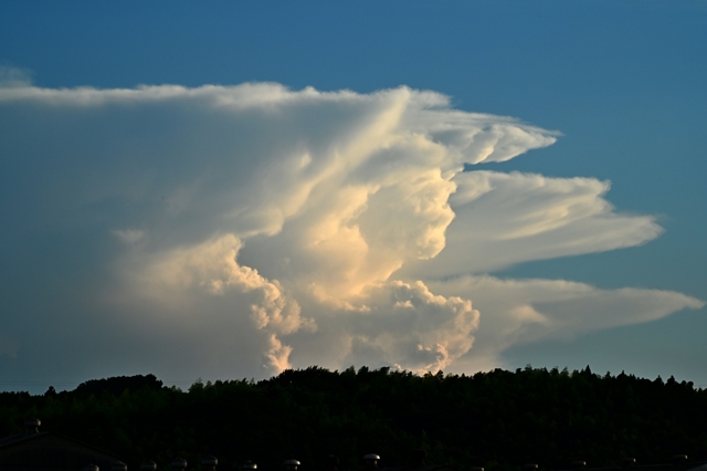今日は昼ころから中部山岳方面での積乱雲が発達し、無数の かなとこ雲が重なる空になってゆきました。 鈴鹿山脈の周辺には、くりかえし塔状の積乱雲が発達。 夕方には、連日の奈良県方面の積乱雲・かなとこ雲。 |