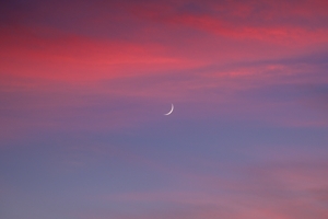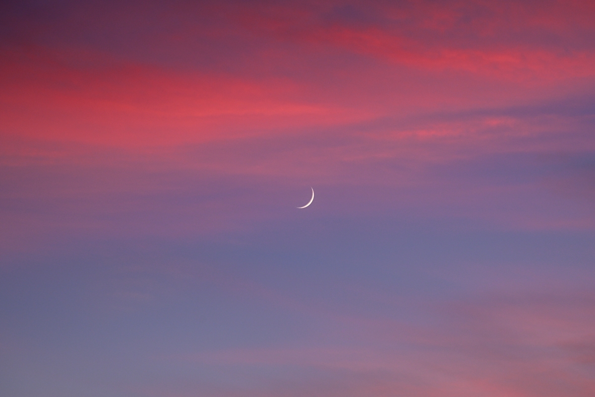 夕焼けの巻層雲と三日月(月齢2.6) | ||