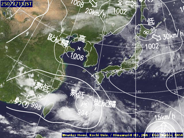 | 地上(高知大学気象情報頁赤外画像と気象庁速報天気図を合成) 15時 | |||