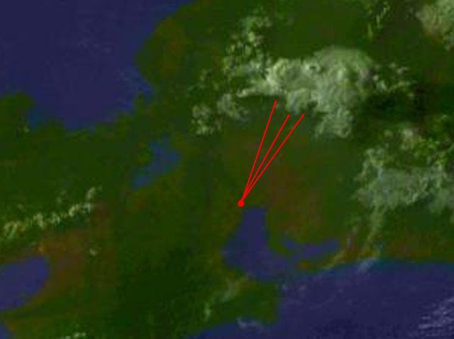 | 地上(高知大学気象情報頁赤外画像と気象庁速報天気図を合成) | |||