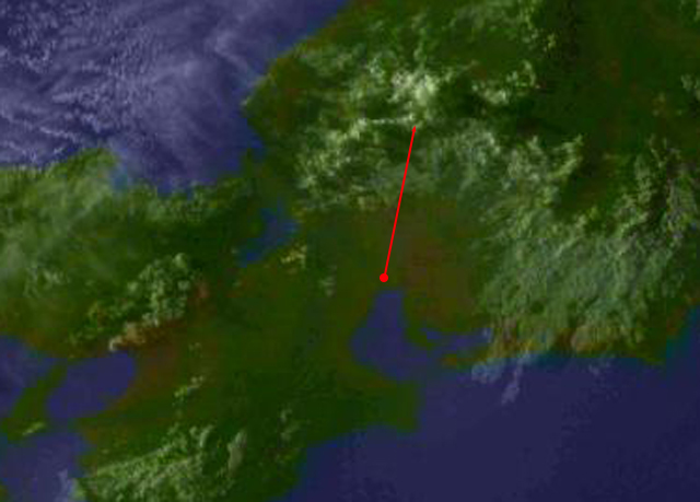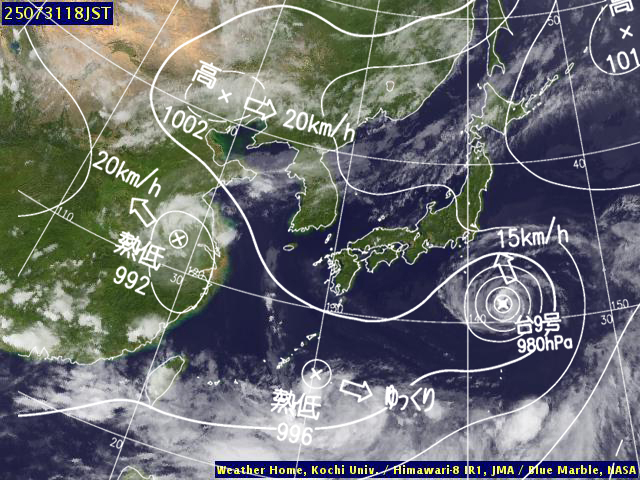| 地上(高知大学気象情報頁赤外画像と気象庁速報天気図を合成) | |||