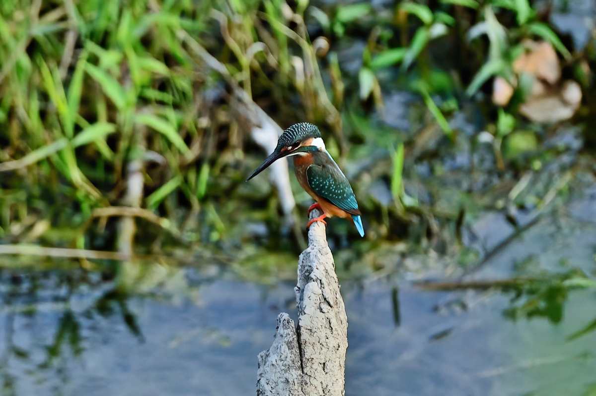 | 夕方の員弁川。 ここのところ連日、カワセミが冬場によくあらわれるポイントに 姿を見せており、今日は2羽が連れだって飛ぶ場面もありました。 撮影したのは同じ1個体で、羽の色がずいぶん違って見えますが、 順光に近い直射日光で緑っぽく、影の部分で青く見えるためです。 胸元は黒みがあってまだ幼い個体のように思えます。複数の個体が 活動していて、毎日見ているのが同じなのかわかりにくいですが、 夏から秋にかけて継続して観察を続けていきたいところです。 |