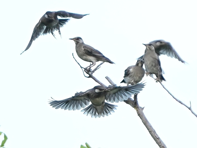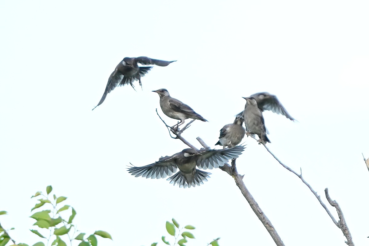 | ムクドリ 逆光に透ける翼が美しい。 |