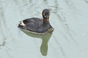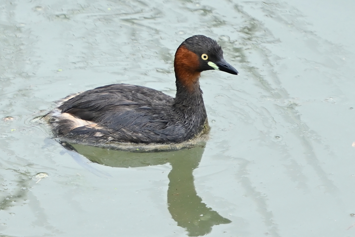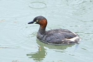 中州にホオジロ、手前岸(北岸)にカイツブリ。