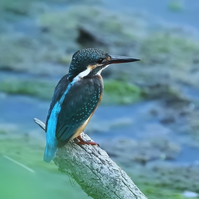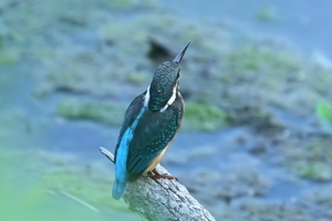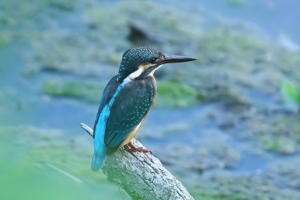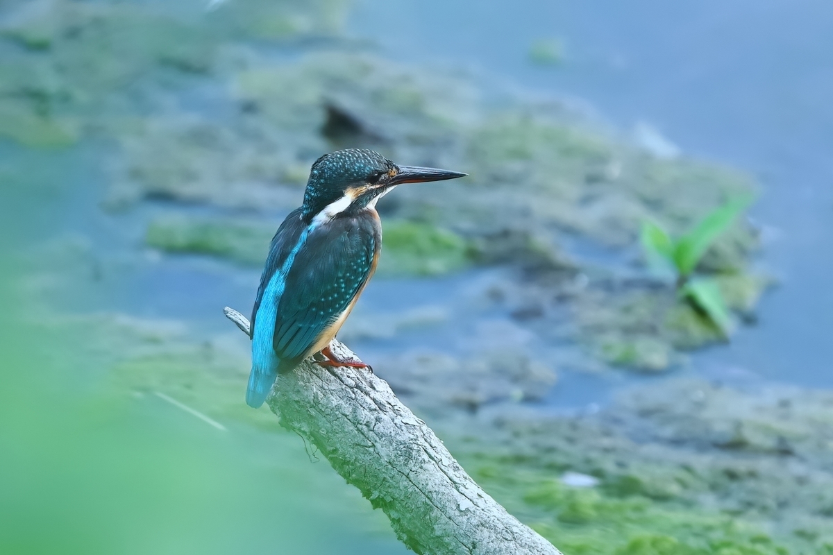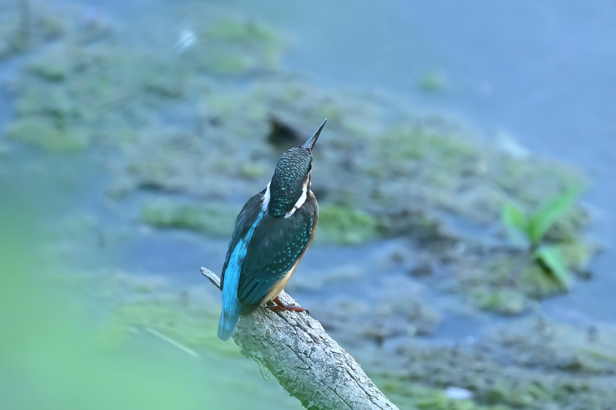 夕方の員弁川。 一昨日、手前岸の死角になるところに佇むカワセミがいて、 今日はそこがぎりぎり見える位置にカメラをセットしたところ、 早めの時刻(17時30分)にに登場しました。太陽が雲に 隠れて暗くなったところで、静止姿のみを撮影しました。 下くちばしが少し赤いようで、たぶんメスの個体です。 (角度的にちょっと不確実。) |
