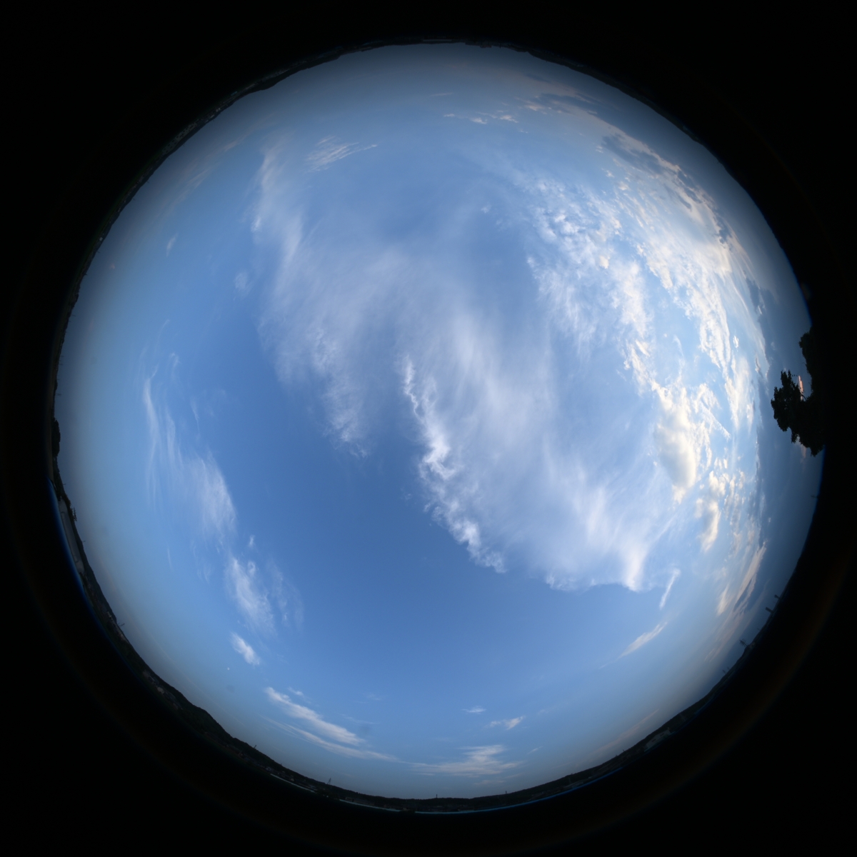 西から かなとこ雲のレムナント 18:17 上が北 全周魚眼 |