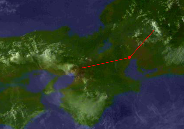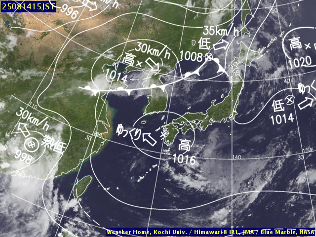 | 地上(高知大学気象情報頁赤外画像と気象庁速報天気図を合成) | |||