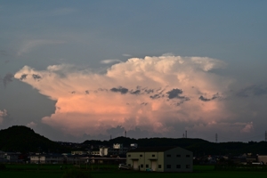 | 積乱雲のずきん雲 18:38 西南西 300mm |