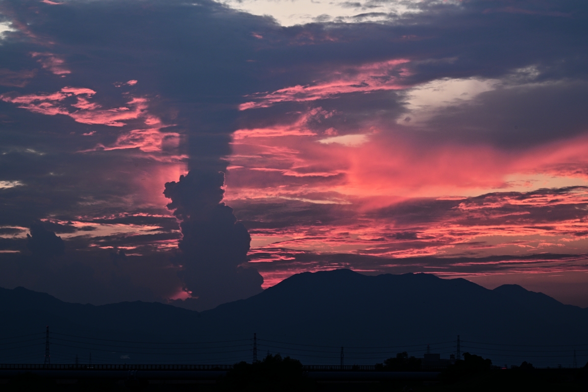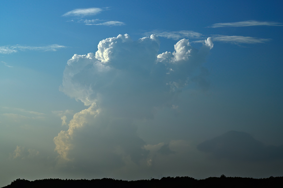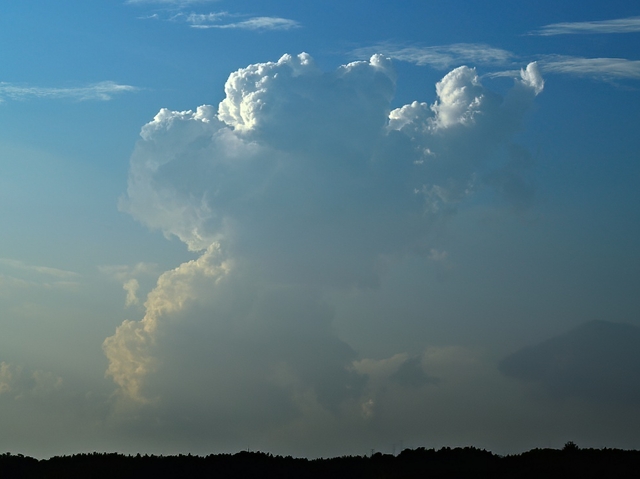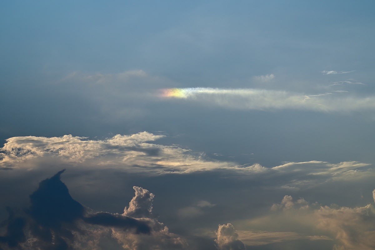 最高気温(桑名)は36.4℃で、連日の猛暑日。 日中は屋外に出るのがかなり苦しさを感じました。 夕方に、いくつかの積乱雲やかなとこ雲が散見されました。 ただ、次々と積乱雲が発生することはなく、衛星画像でも 積乱雲の活動が低調になっているようすがわかります。 西の空でシルエットになったかなとこ雲の近くには、 (おそらく)別のかなとこ雲が起源と思われる巻雲に、 とても色鮮やかな幻日が見られ、見入ってしまいました。 |