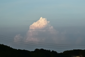 巻雲の乳房雲 18:22 南南西 135mm 奈良県の積乱雲のかなとこ雲にも 見えるが、無関係の巻雲かも。 |