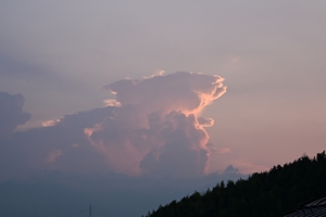 積乱雲 18:29 北東 70mm 東濃方面のかなとこ雲の手前に発生。 夜の初め、頻発する雷光が見えた。 |