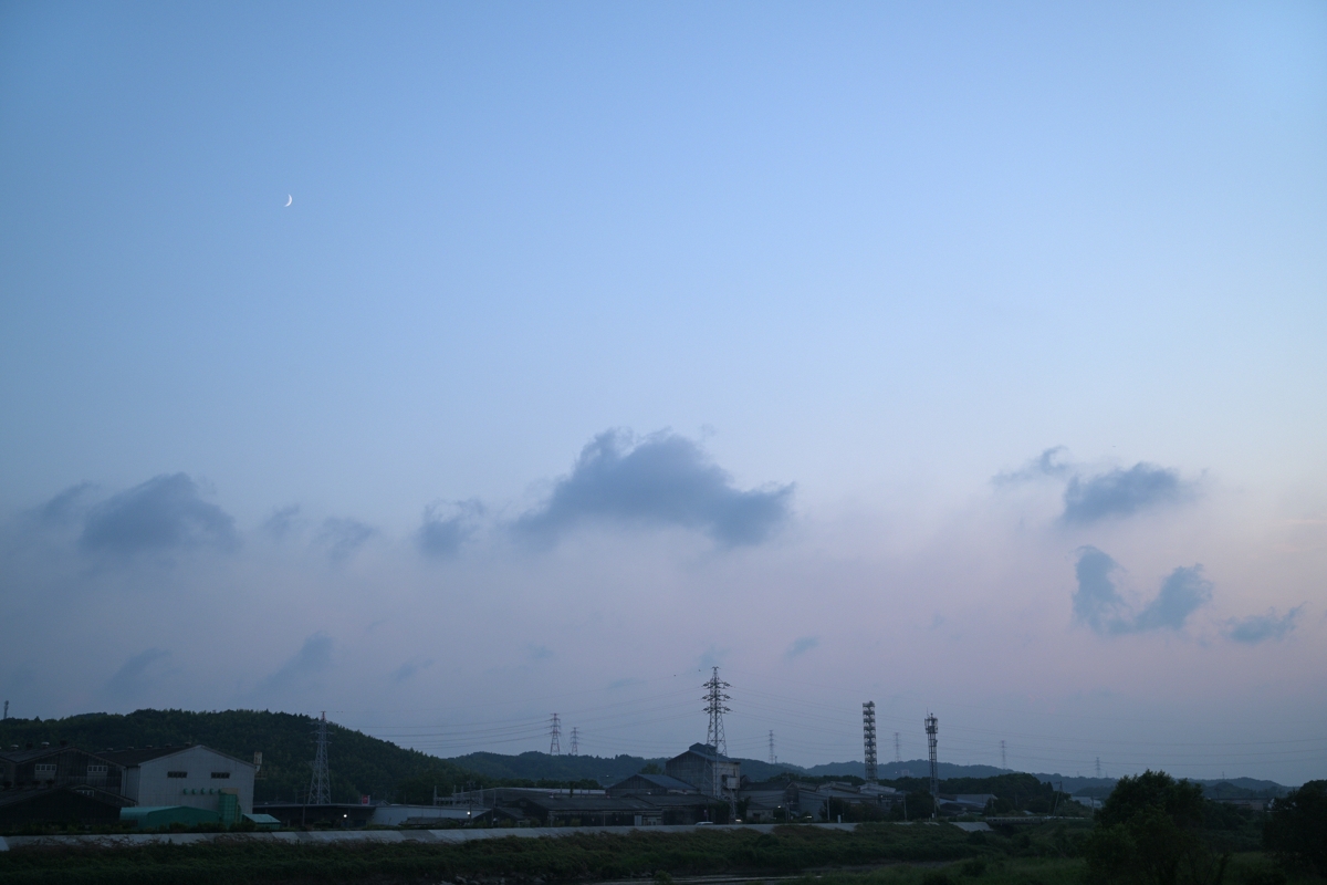 積乱雲の発生はおさまって、日中の積雲は雄大雲どまり。 夕方、雄大雲は消え、南東からの湿った空気が下層雲と ともに流れてきました。 最高気温(桑名)は35.7℃で、13日連続の猛暑日となりました。 |
