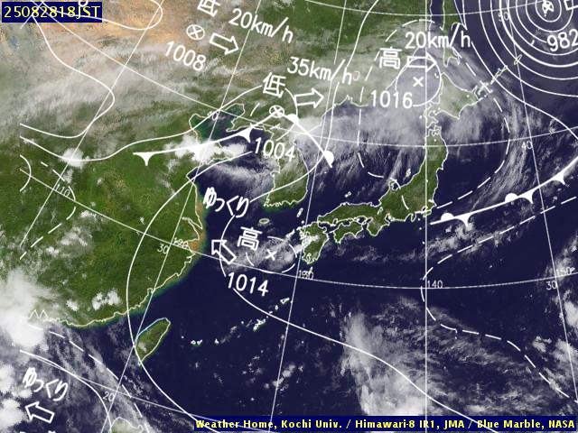 | 地上(高知大学気象情報頁赤外画像と気象庁速報天気図を合成) | |||