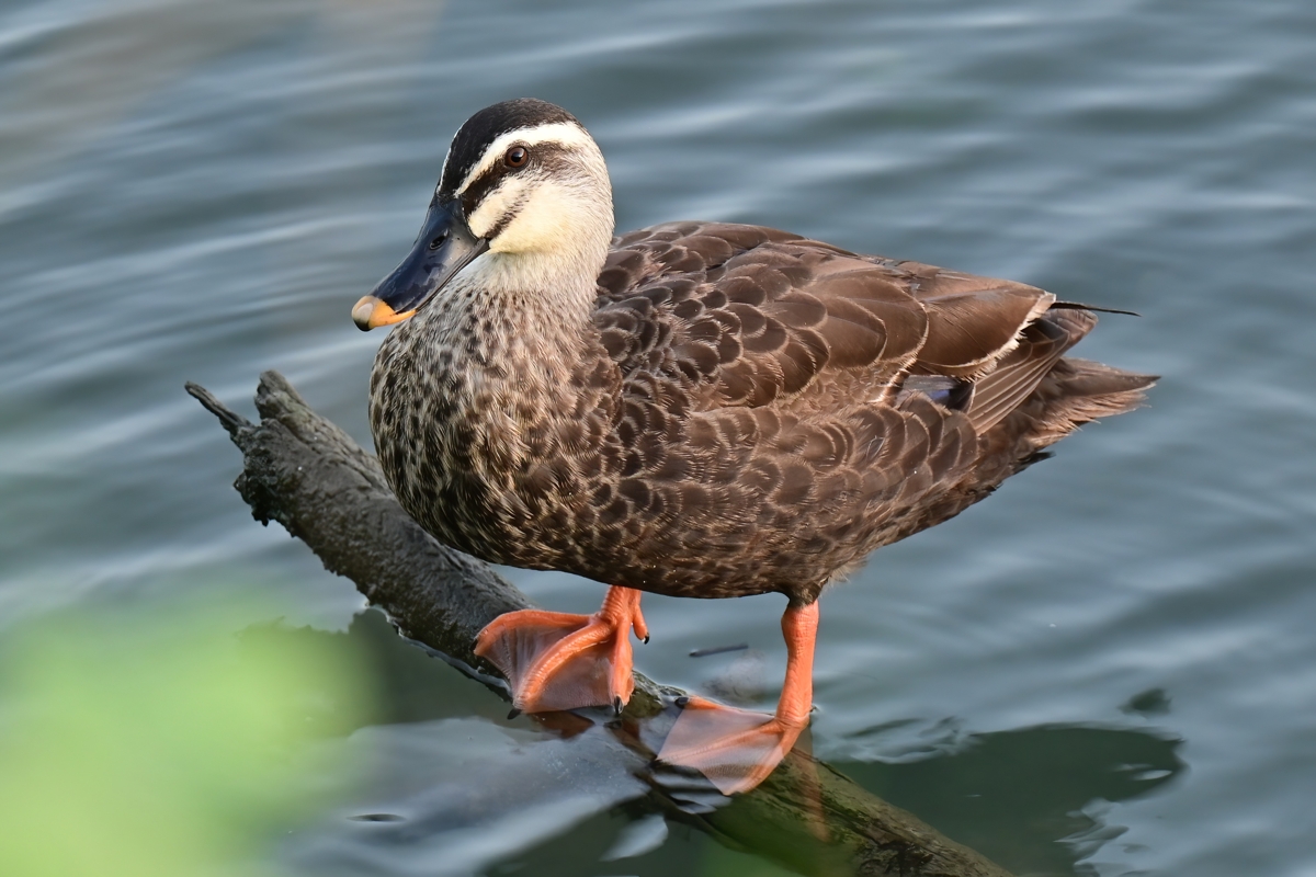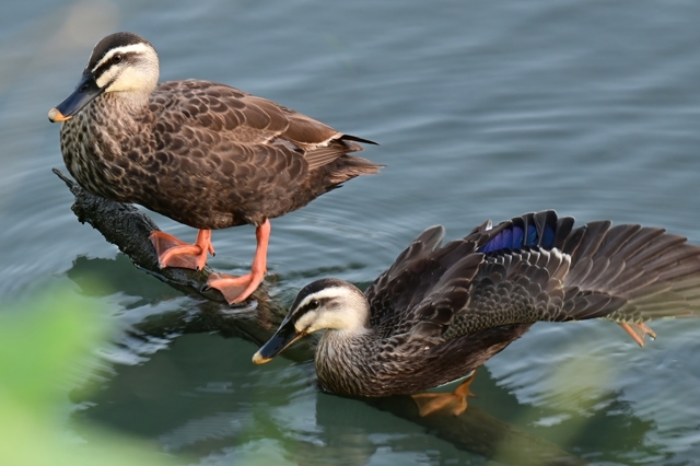 カワセミがよく留まる倒木にてカルガモ親子が休憩。