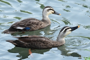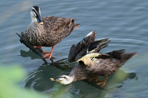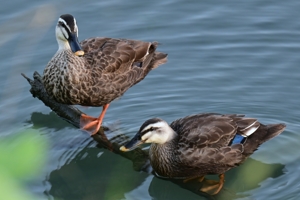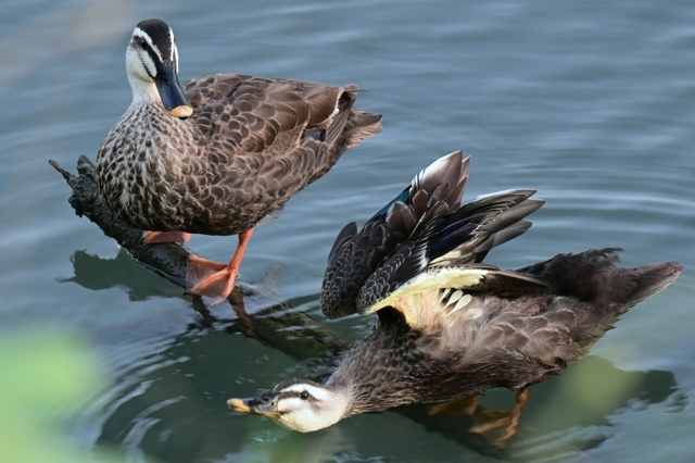 「カワセミポイントにカルガモ親子」