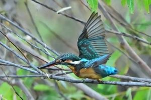 カワセミの留まる場所がことごとく水没しているなかで