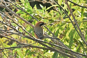 高鳴きをするモズ(オス)がいつもとはちがう樹木に。
