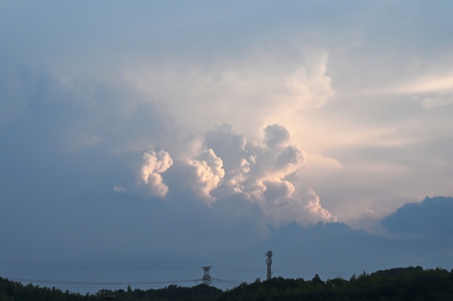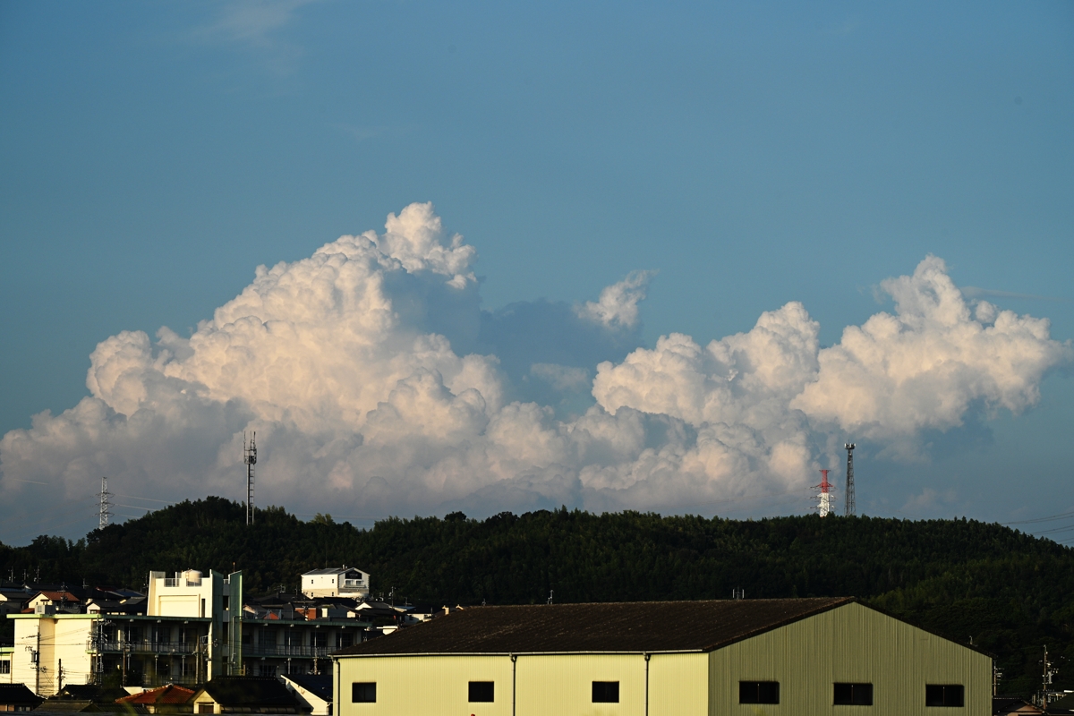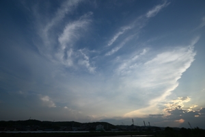 | 昨日に続いて北太平洋高気圧におおわれて気温が上昇。 猛暑日とまではならずも、盛夏が戻ってきているような陽気。 昼過ぎ、南から巻雲(房状雲)が流れてくるさわやかな青空。 夕方、南南西に低い透明度ながら複数の積乱雲。日没前には 複数のかなとこ雲。三重県津市美杉方面のものです。 |