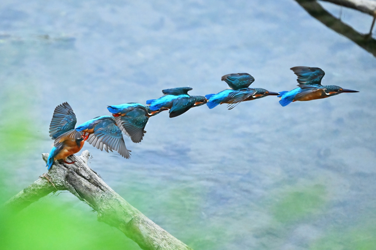 | カワセミ 1/20秒間隔の6コマ合成 |