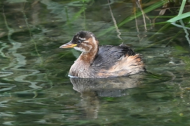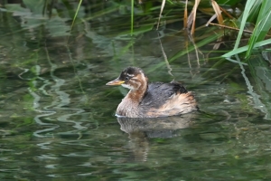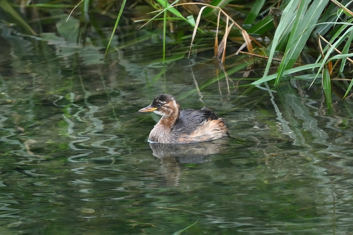 カイツブリの幼鳥。撮影は中州の岸辺の翳った場所です。