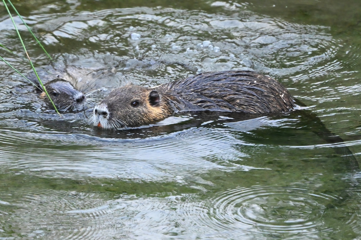 「カイツブリ(幼鳥)/親子のヌートリア」