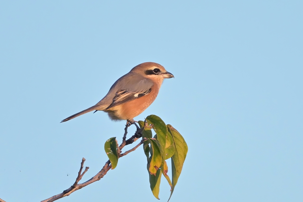 「夕陽を受けるモズ」