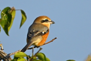 モズ(オス)がいつもの樹木と中州を行き来しています。