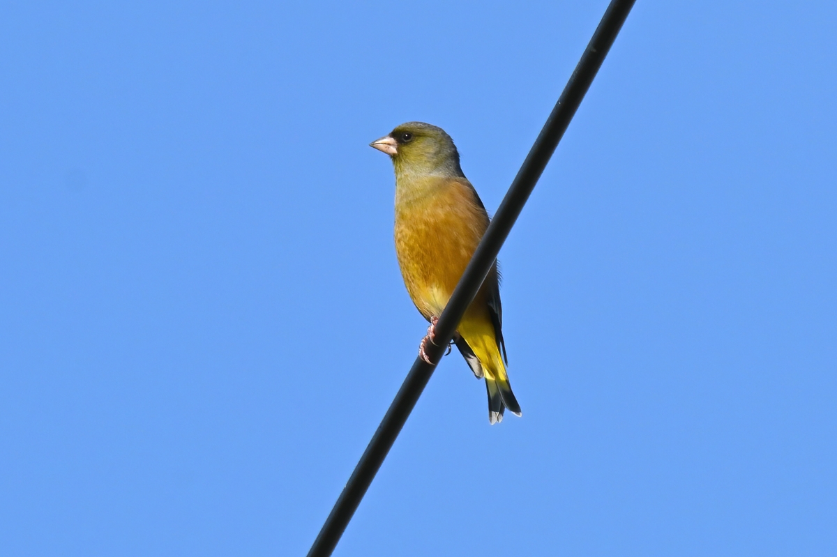 1羽はカワラヒワで、この秋の初見です。