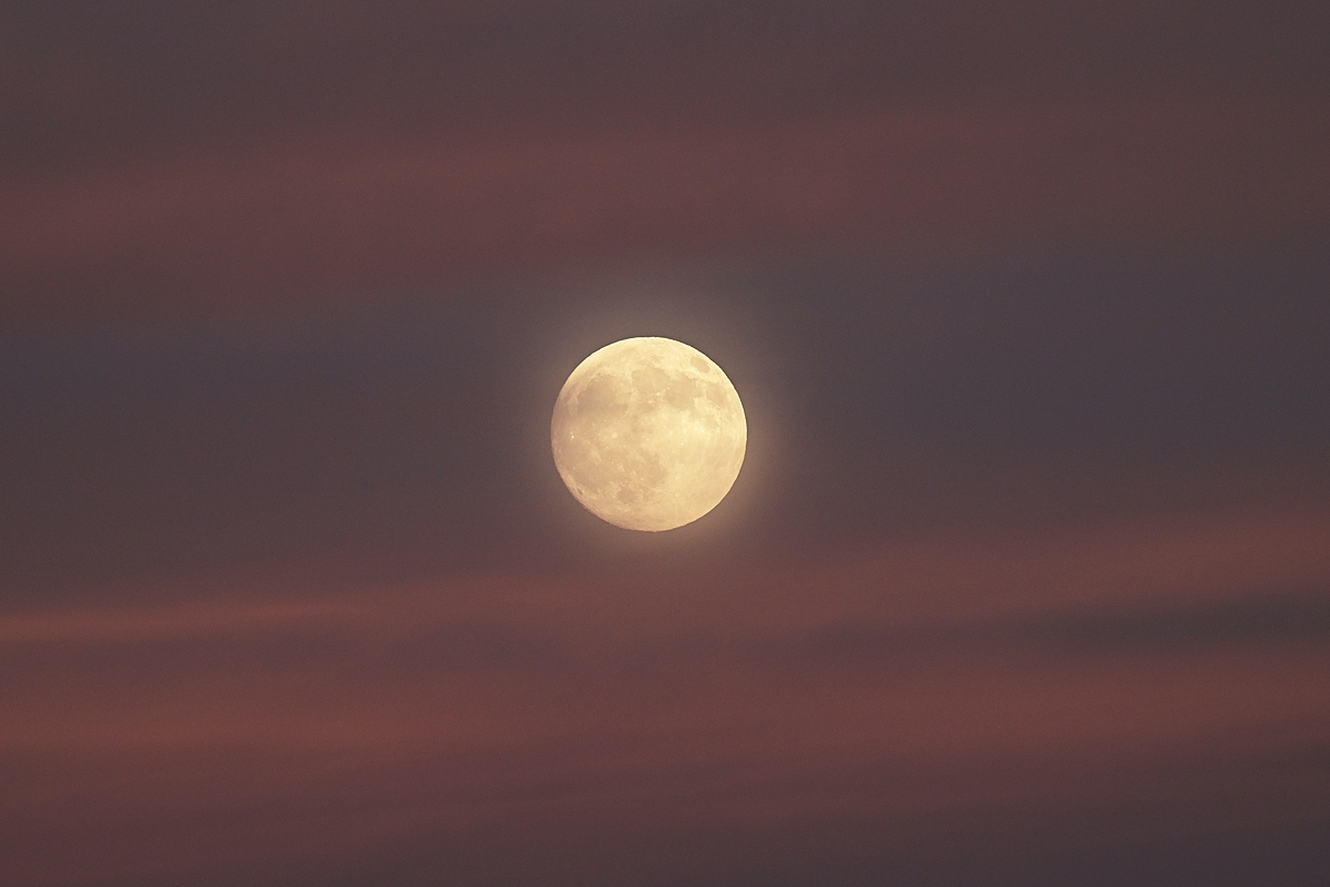 | 昼過ぎに北から巻雲が来て、タンジェントアークや22°ハロ。 夕方には、濃密気味の巻雲や巻層雲。 巻雲に乳房雲が見られ、西方の巻層雲には幻日が日没頃まで明滅 しながら継続。 日没後にはレンズ雲や巻雲が夕焼けに染まり、 東の空の巻層雲も赤色に。 そこへ仲秋の満月が昇ってきました。 |
