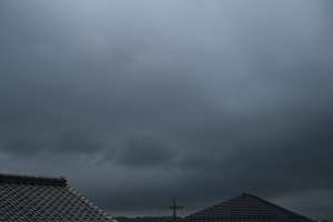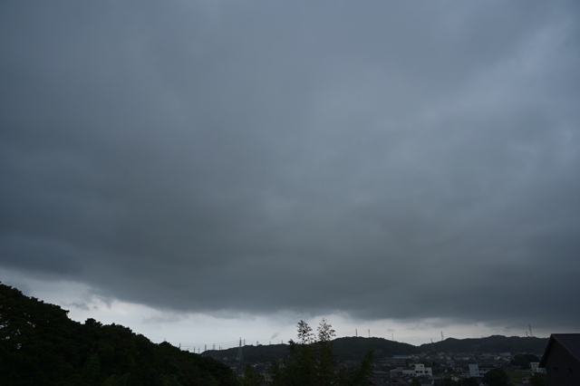 停滞前線上に低気圧が発生し、前線の雨雲の南端が三重県 北部にかかり続けて雨の天気になりました。南の空は明るく、 乱層雲の南縁である様子がよくわかる状況が続きました。 また、低気圧と前線の東進に伴い、夜に寒冷前線に近い状態 の雲がかかってきて、夜半ごろには数発の雷が発生しました。 |