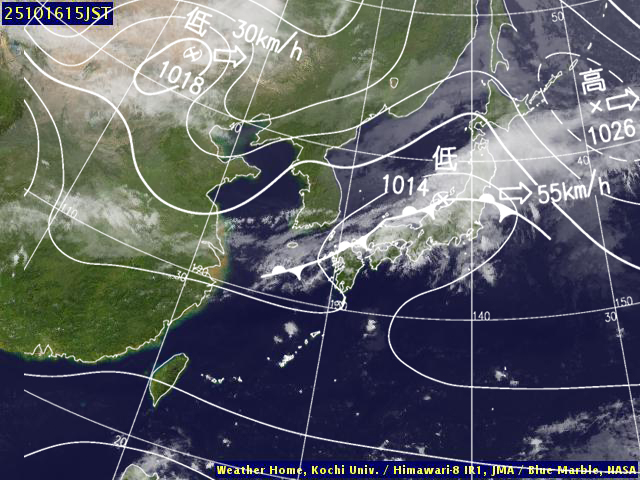 (高知大学気象情報頁赤外画像と気象庁速報天気図を合成)